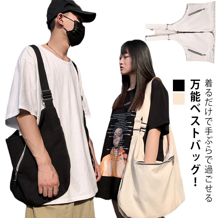 着るベストバッグ サマーベスト ベスト型 チョッキ バック ノースリーブ ジャケット 袖なし トップス 通学 アウトドアベスト 収納 通勤 肩掛け 仕事バッグ 鞄 斜め掛け タンクトップ