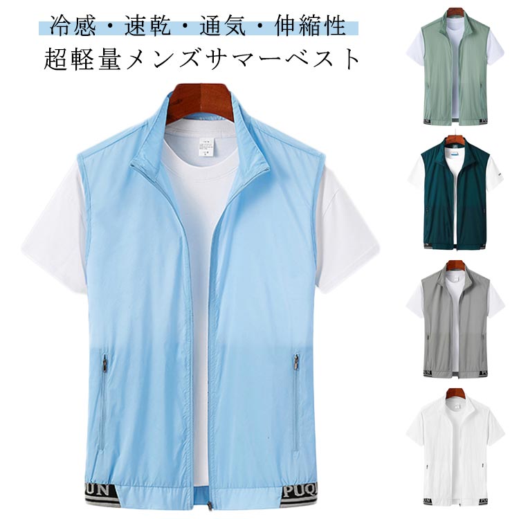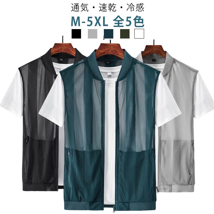 前開きベスト サマー チョッキ プレゼント 薄手 メンズ ジレ 夏用 メッシュベスト ミリタリーベスト 作業服 農作業 制服 仕事 レジャー 透け感 通気性 ライトアウター 贈り物 ギフト