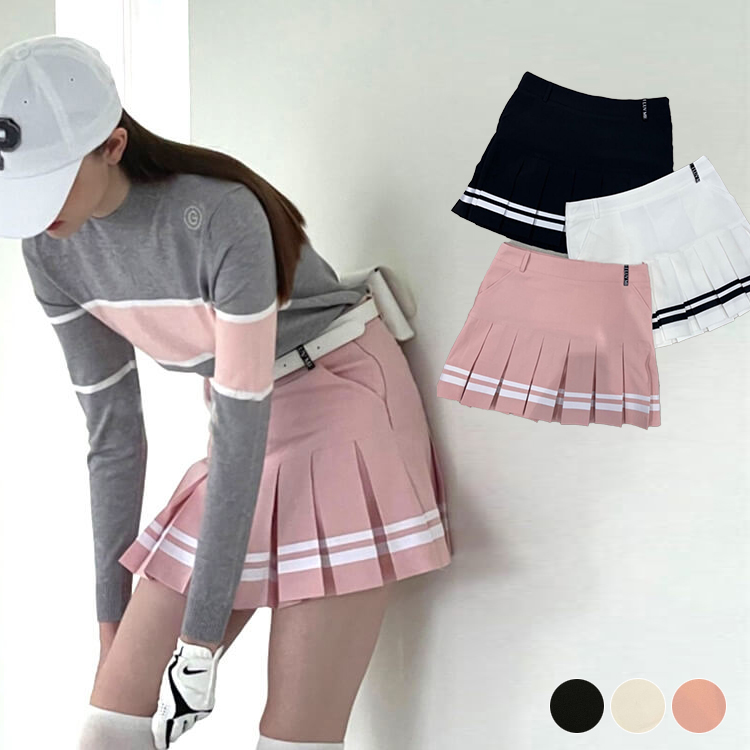 ゴルフウェア レディース 韓国 スカート ミニスカート ミニ丈 Aライン トリコロール ゴルフウエア ゴルフ ウエア ライン プリーツスカート プリーツ 春 秋 夏 おしゃれ グレー ホワイト