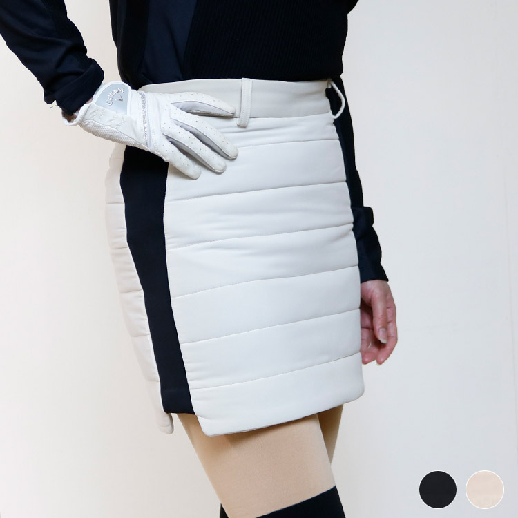 ゴルフウェア レディース 韓国 スカート ペディング 中綿 裏起毛 ライン おしゃれ セクシー タイト フィット ゴルフウエア ゴルフ ウエア 秋 冬 スポーツウェア 白 ホワイト ブラック 黒