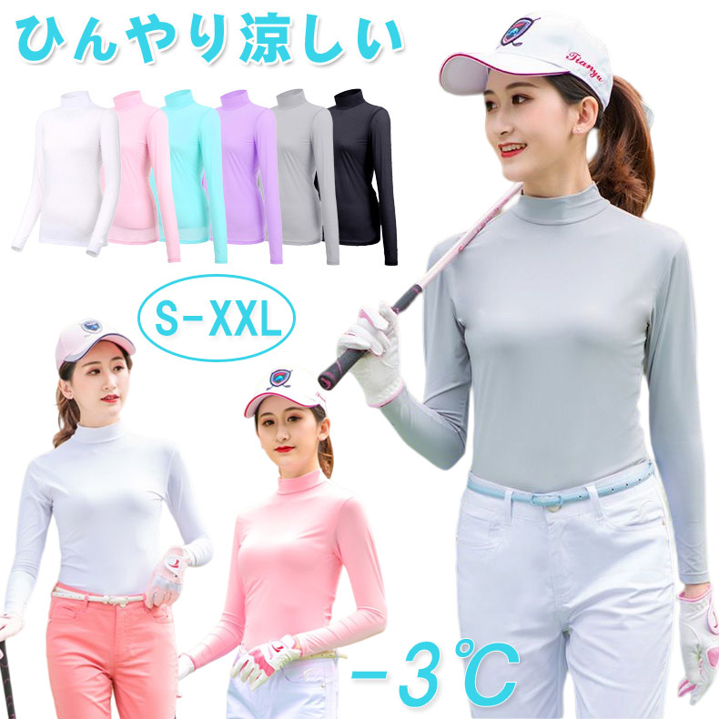 日焼け防止インナー -3℃ひんやり体感 レディース ゴルフウェア 女性 女子 日焼け対策 涼しい素材 ストレッチ 伸縮性 カット 吸汗 速乾 アンダーシャツ
