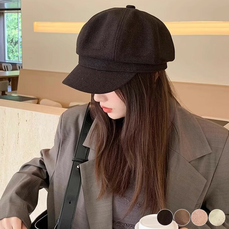 キャスケット レディース 帽子 ゴルフ 深め フェルト 韓国 八角帽 小顔 秋冬 ベレー帽 秋 冬 カジュアル 大人 おしゃれ 無地