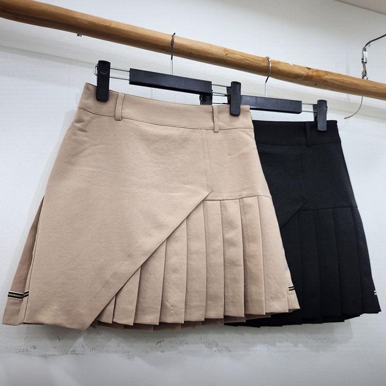 ゴルフウェア スカート レディース 韓国 プリーツ ラップ 春 秋 ポケット おしゃれ アシンメトリー ライン 切り替え 黒 ベージュ ミニスカート ショート丈 ゴルフ女子 大人 ゴルフ スポーツ テ