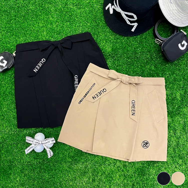 ゴルフウェア スカート レディース 韓国 リボン Aライン タック 夏 春 秋 ベージュ 黒 春夏 ミニスカート カーゴ ポケット キュロット ミニ ショート丈 おしゃれ ゴルフ女子 大人 ゴルフ ス