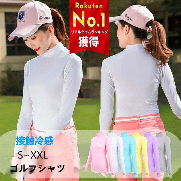 ゴルフシャツ UVカット ひんやり ストレッチ 長袖 日焼け防止 接触冷感 夏 スポーツ ハイネック 通気 吸汗 速乾 ゴルフインナ インナーシャツ レディース Tシャツ 快適 薄手 ヨガ アウトドア