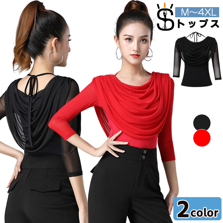 2色 ダンス衣装 ダンス 衣装 トップス レディース用社交ダンス フラダンス 衣装トップス レッド 赤 ブラック