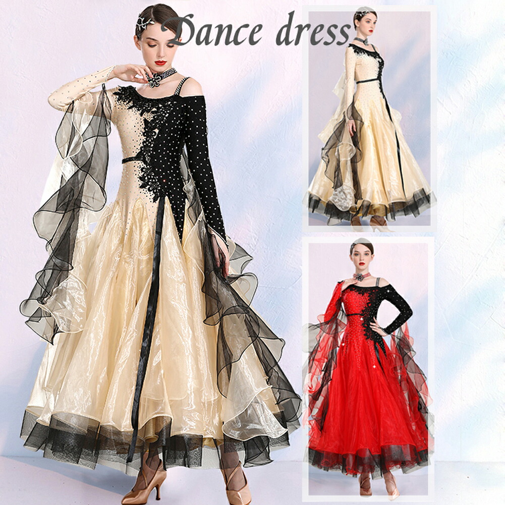 社交ダンス レディース ダンスドレス 衣装 ワルツ ワンピース イベント 大きい裾 モダン ドレス 社交ダンス衣装 広がる裾 スタンダード レッスン着 演出用 高級感 踊りドレス 大人気