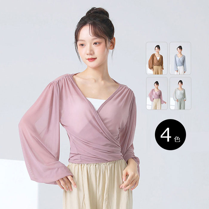 ダンストップス 長袖 トップス レッスンウェア ダンス着 バレエ レッスン着 ダンストップススポーツ アウトドア 体操 ダンス バレエ トップス