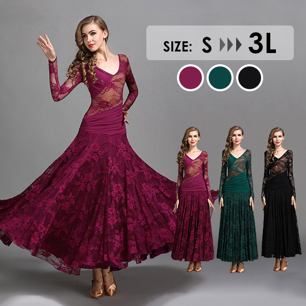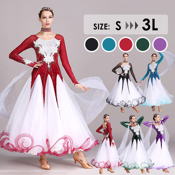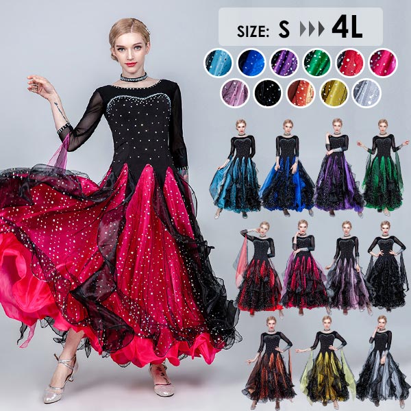 社交ダンスドレス 広がる裾 競技用ドレス ダンス衣装 ダンスウェア ステージ衣装 大きいサイズ カラオケ スタンダード ドレス ワルツ ワンピースドレス