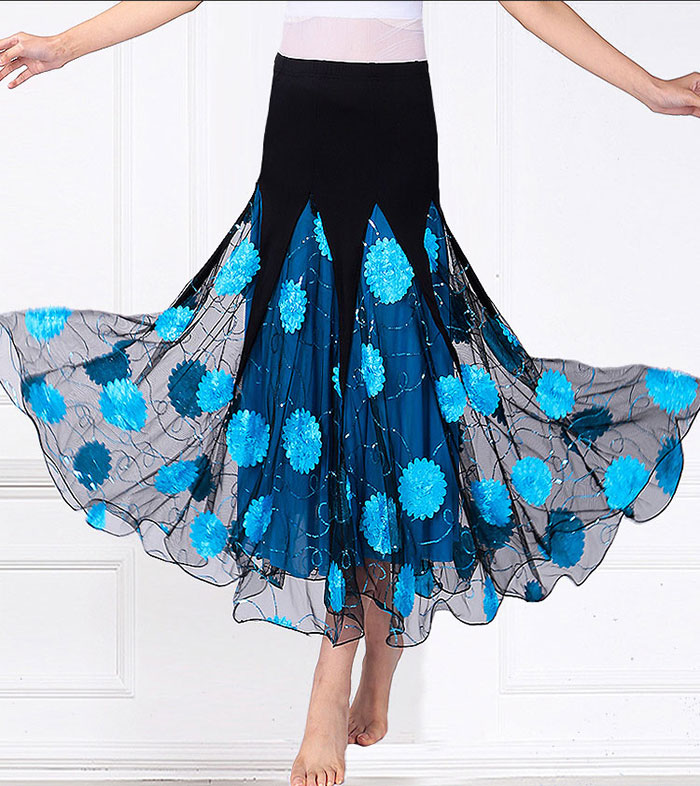 在庫処理 ダンススカート ダンス 衣装 スカート 社交ダンス ロング丈 キラキラ ストレッチ素材 ウエストゴム ダンス レッスン着 発表会 ステージ 舞台衣装 レッド ブルー パープル ピンク ブラッ
