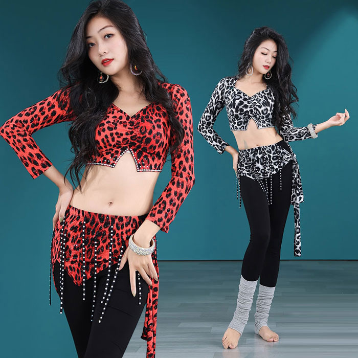 ベリーダンス 衣装 レッスン着 セットアップ 豹柄 ヒョウ柄 シマウマ柄 ゼブラ柄 総柄 おしゃれ ベリーダンス衣装 発表会 衣装 長袖 チョリ トップス レオパード ヒョウ柄 パンツ ロング丈 タイ