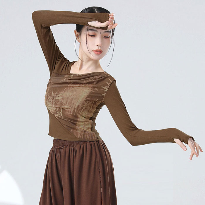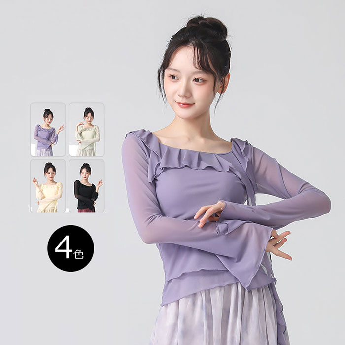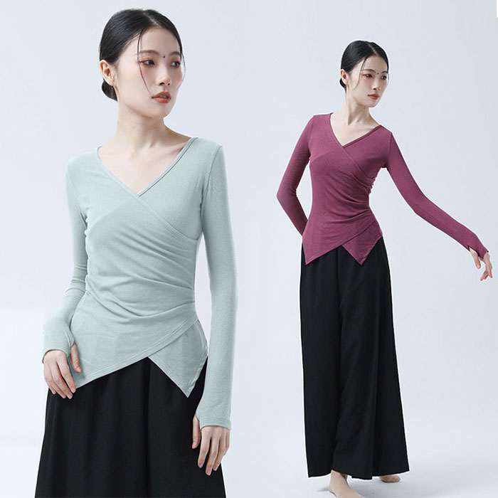 ダンストップス 長袖 トップス レッスンウェア ダンス着 バレエ レッスン着 ダンストップススポーツ アウトドア 体操 ダンス バレエ トップス