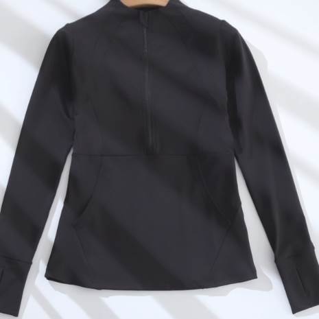 トップス トレーニングウエア 袖付き 長袖 ミディアム丈 プルオーバー 襟なし ラウンドネック ハーフジップ 通気性 速乾性 かわいい 大人可愛い シンプル カジュアル 大人 上品 おしゃれ