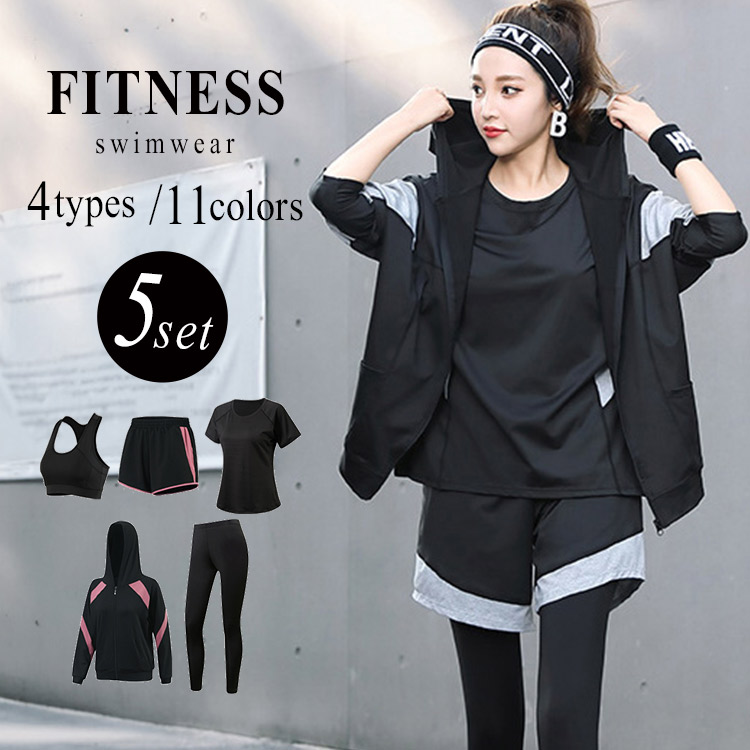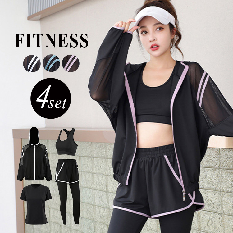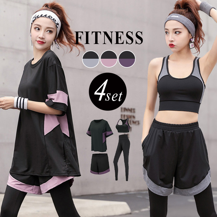 一式まとめて揃えてすぐに運動できる ヨガウエア ワークアウト 女性 裾 ドローコード Bタイプのみ スリットトップス C Dタイプのみ ストレッチ スポーツ