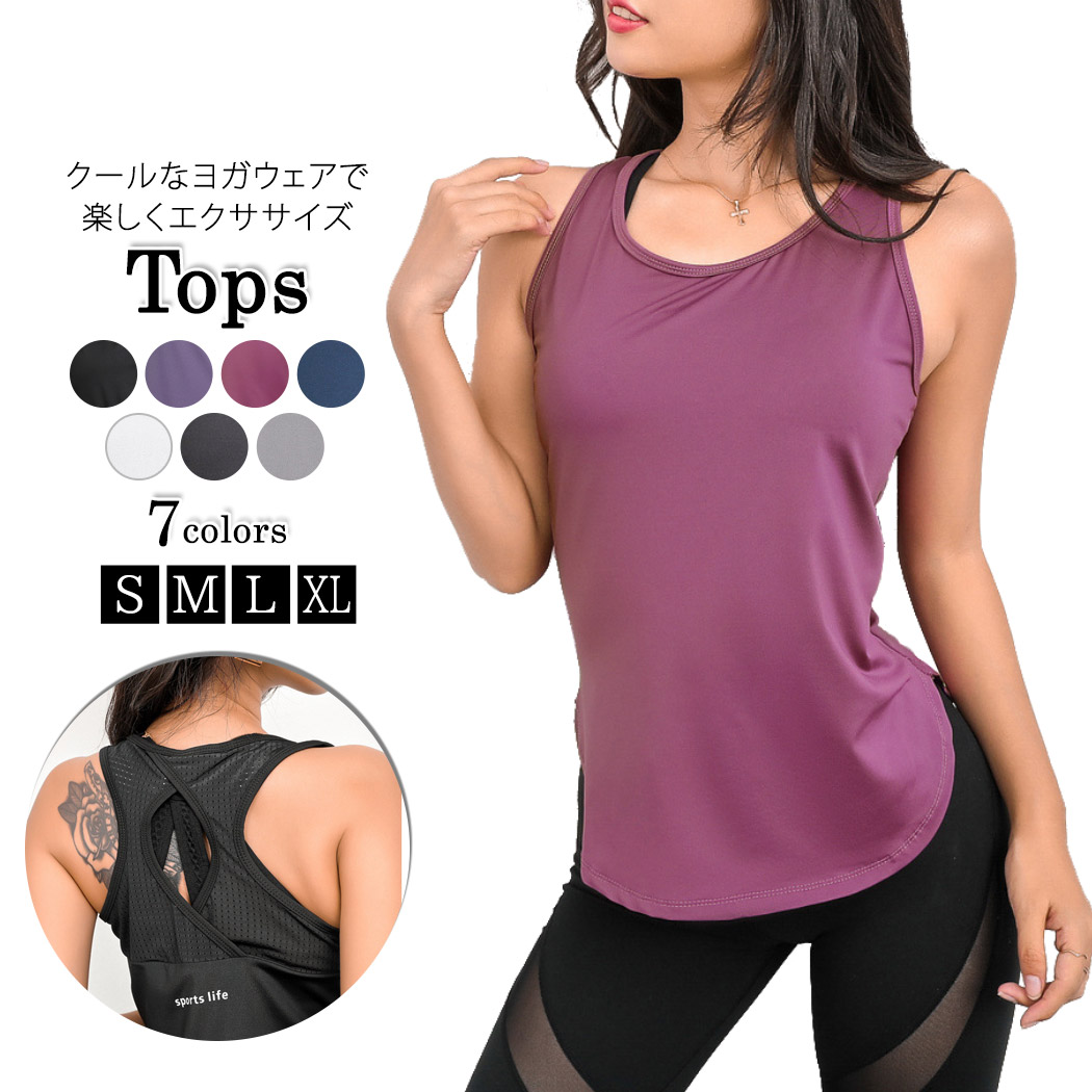 ヨガ フィットネスウェア トレーニングウェア 女性 タンクトップ バッククロス パッド付き 裏地付き メッシュ 通気性
