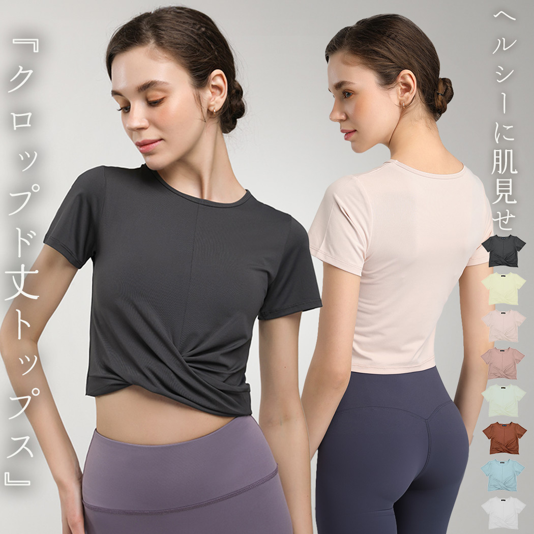スポーツウェア ヨガ フィットネスウェア Tシャツ 短め 女性 動きやすい 伸縮性 くすみカラースポーツ アウトドア ヨガ ピラティス ウェア トップス