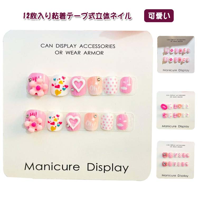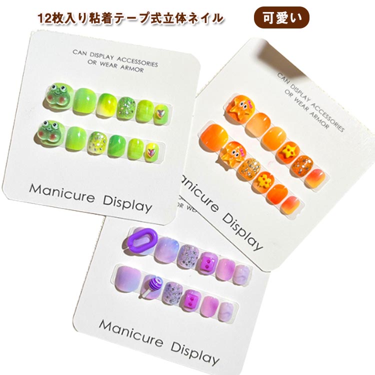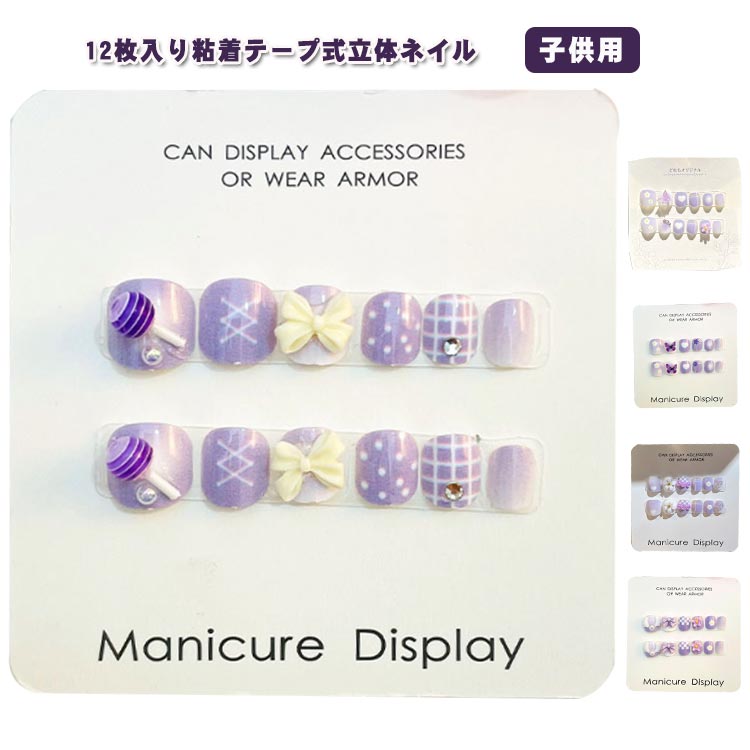 ネイル チップ キッズ 子供用 貼るだけ 12個入り 粘着テープ付き アクセサリー クリスマス かわいい きれい