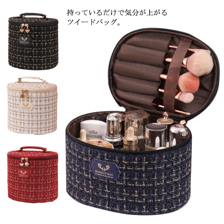 女の子大好きなツイード生地化粧ポーチ 収納力バツグン 可愛くてたっぷり入る大容量のマチつき レディース カラバリ 小物入れ