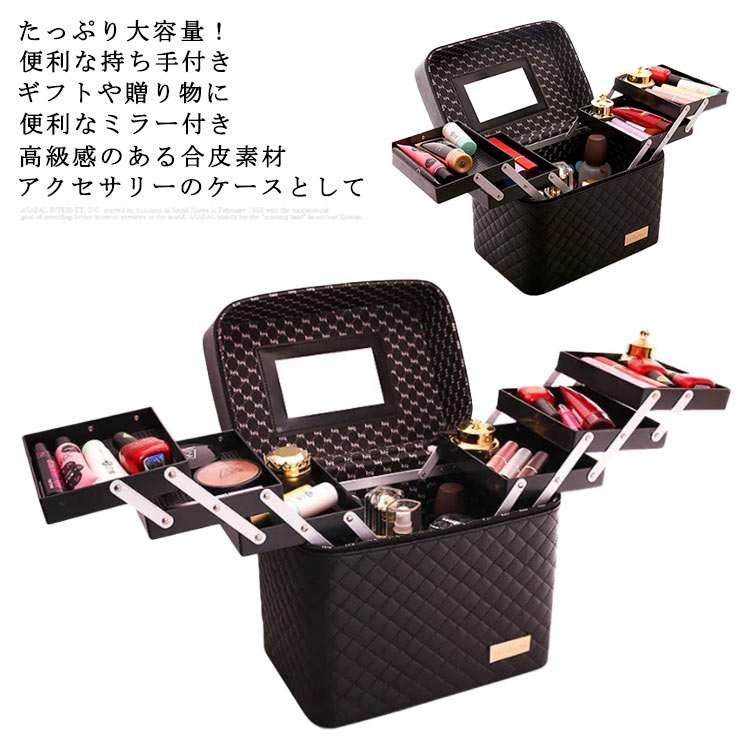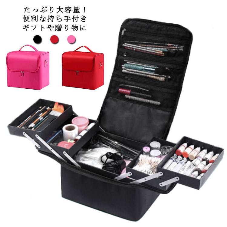 大容量 4段トレイ付きでタップリ収納、横開きで使いやすい トート、ワンショルダー 2美容 コスメ 香水 メイク道具 ケアグッズ メイクボックス