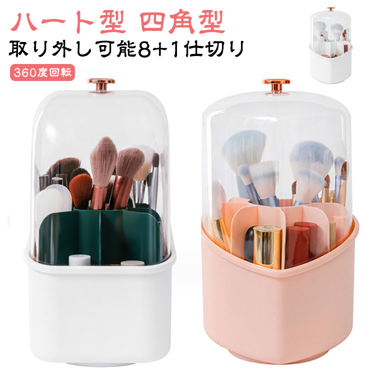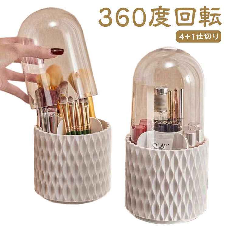 メイクブラシケース ブラシスタンド 透明 360度回転式 蓋つき 化粧品 防塵 防水 大容量 化粧ブラシホルダー メイクブラシ立て 仕切り 卓上 プラスチック 省スペース