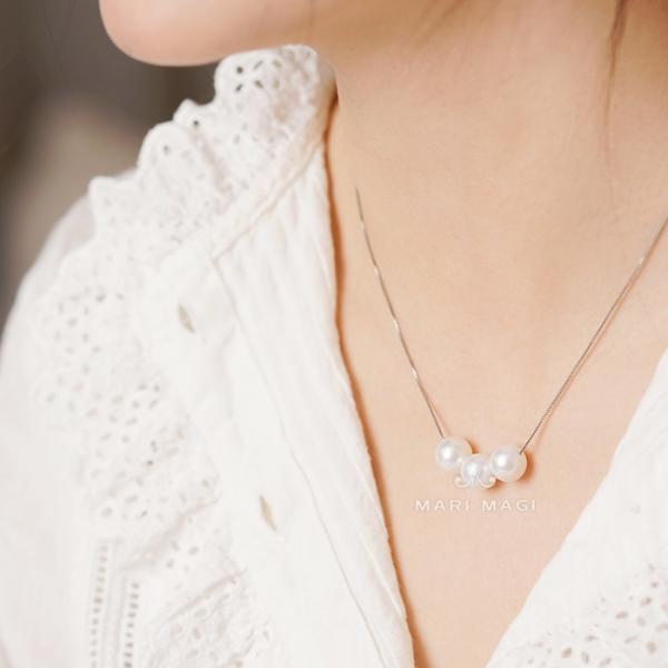冠婚葬祭やフォーマルなシーンに最適な三粒パールネックレス 18金製、アコヤ貝真珠6mm ピンクゴールドとホワイトゴールドの2色展開 長さ調整可能で幅広いシーンに対応