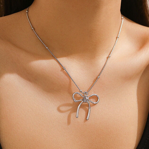 リボン モチーフ バラエティ デザイン ネックレス 女性 レディース 首飾り アクセサリー チョーカー メタリック チェーン パール 可愛い キュート ガーリー カジュアル ロリータ デイリー ギフト