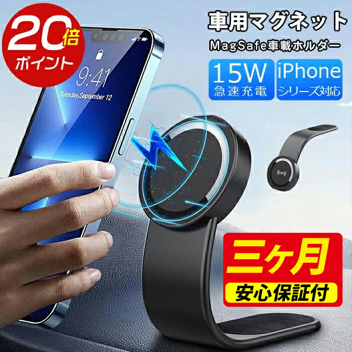 車載 磁気 ワイヤレス充電器 MagSafe 車載ホルダー 車用 15Wワイヤレス 急速充電 マグセーフ 充電器 車 ダッシュボードホルダー 取り付け簡単