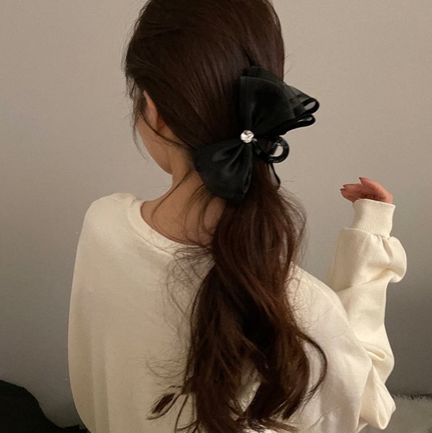 オーガンジーリボンバンスクリップ ビジューバレッタ ヘアクリップ 春夏 ブラック 上品 エレガント シンプル おしゃれ 大人可愛い レディースヘアアクセサリー