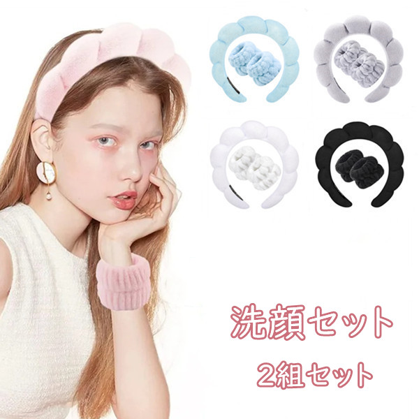 洗顔セット ヘアバンド*2+リストバンド2個*2 洗顔 5色 お風呂 ヘアターバン お風呂上り おしゃれ 髪用 髪 ヘアーバンド レディース 吸水タオル 母の日 タオル地 汗止め タオル かわいい