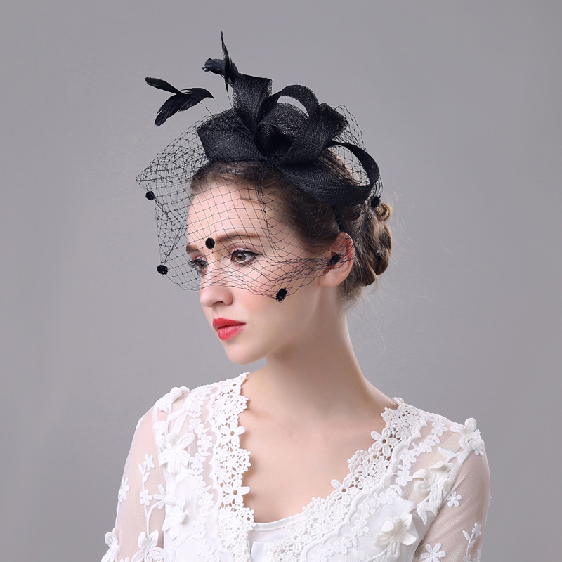カクテル帽 パール付き リボン トーク帽 髪飾り 冠婚葬祭 ミニハット トークハット ベール付き トークハット フォーマル ウェディングヘッドドレス --12961-
