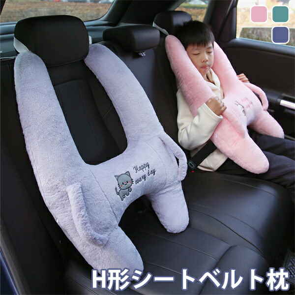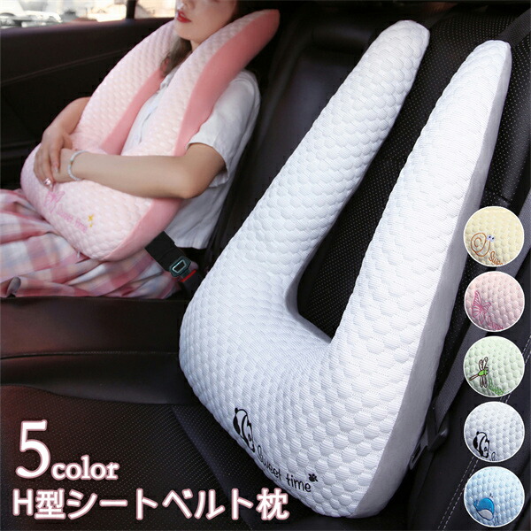 H型シートベルト枕 シートベルトクッション 車用パッド ワンタッチ取付簡単 ふわふわ カバー 高さ調節可 車座席用 お出かけ 位置調節 高弾力 睡眠 カー用品 車用ステッカー 車用パッド 子供用 大人