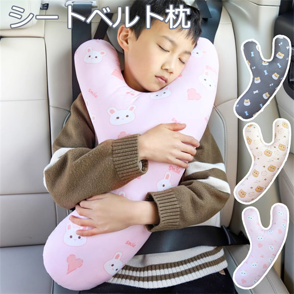 シートベルト枕 カバー 車用パッド ワンタッチ取付簡単 高弾力 丸洗い可 睡眠 カー用品 車用ステッカー ふわふわ シートベルトクッション 子供用 高さ調節可 車座席用 お出かけ 位置調節