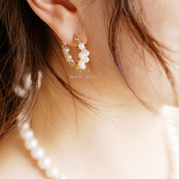 MARIMAGI 金属アレルギー キャッチレス シルバー ゴールド ニッケルフリー フープピアス パール リングピアス 可愛い アクセ 真珠 かわいい おしゃれ 大人
