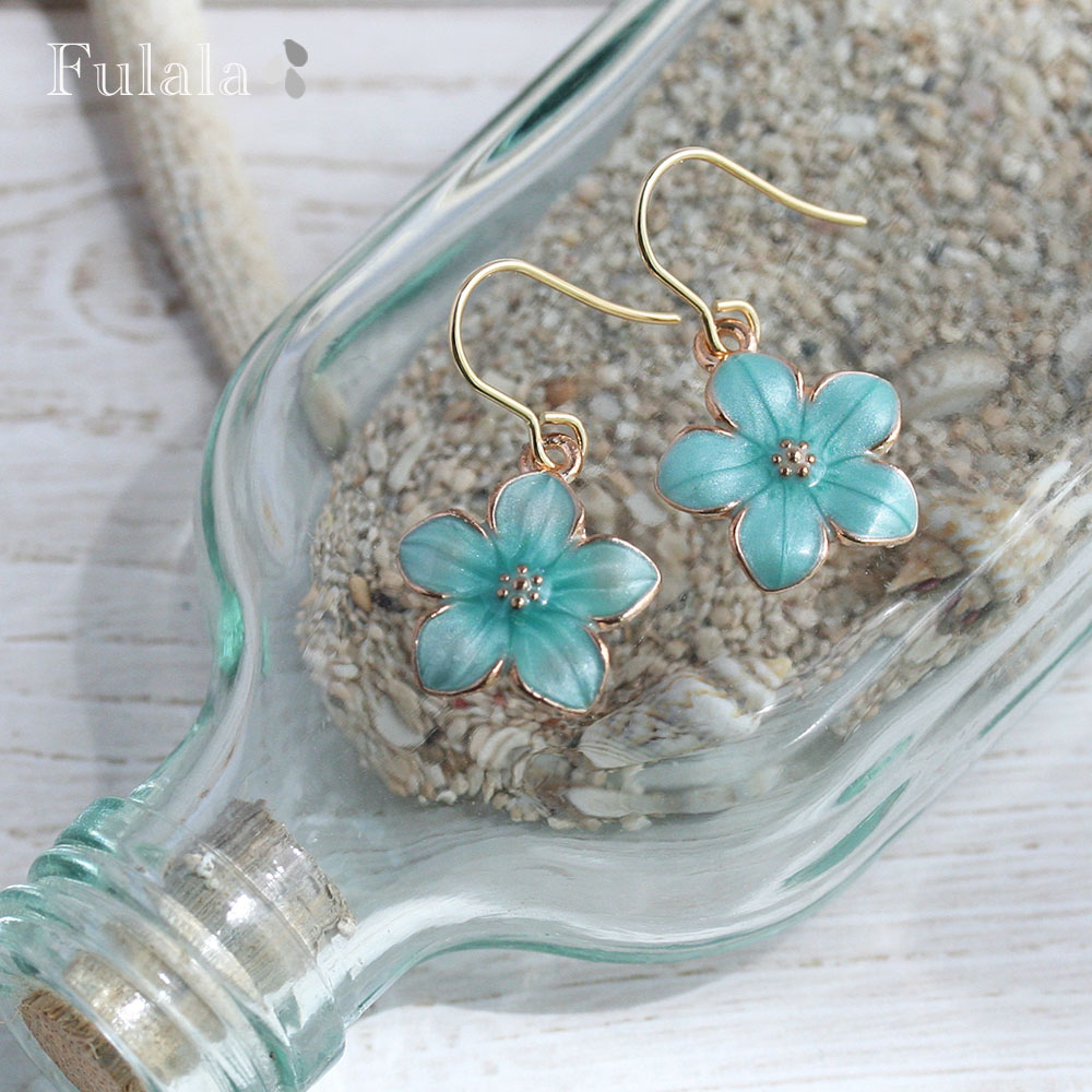 ピアス 金属アレルギー対応 パールブルーのフラワーピアス イヤリング変更無料 ステンレス 316 樹脂ピアス チタンピアス サージカルステンレスピアス 金アレ お花