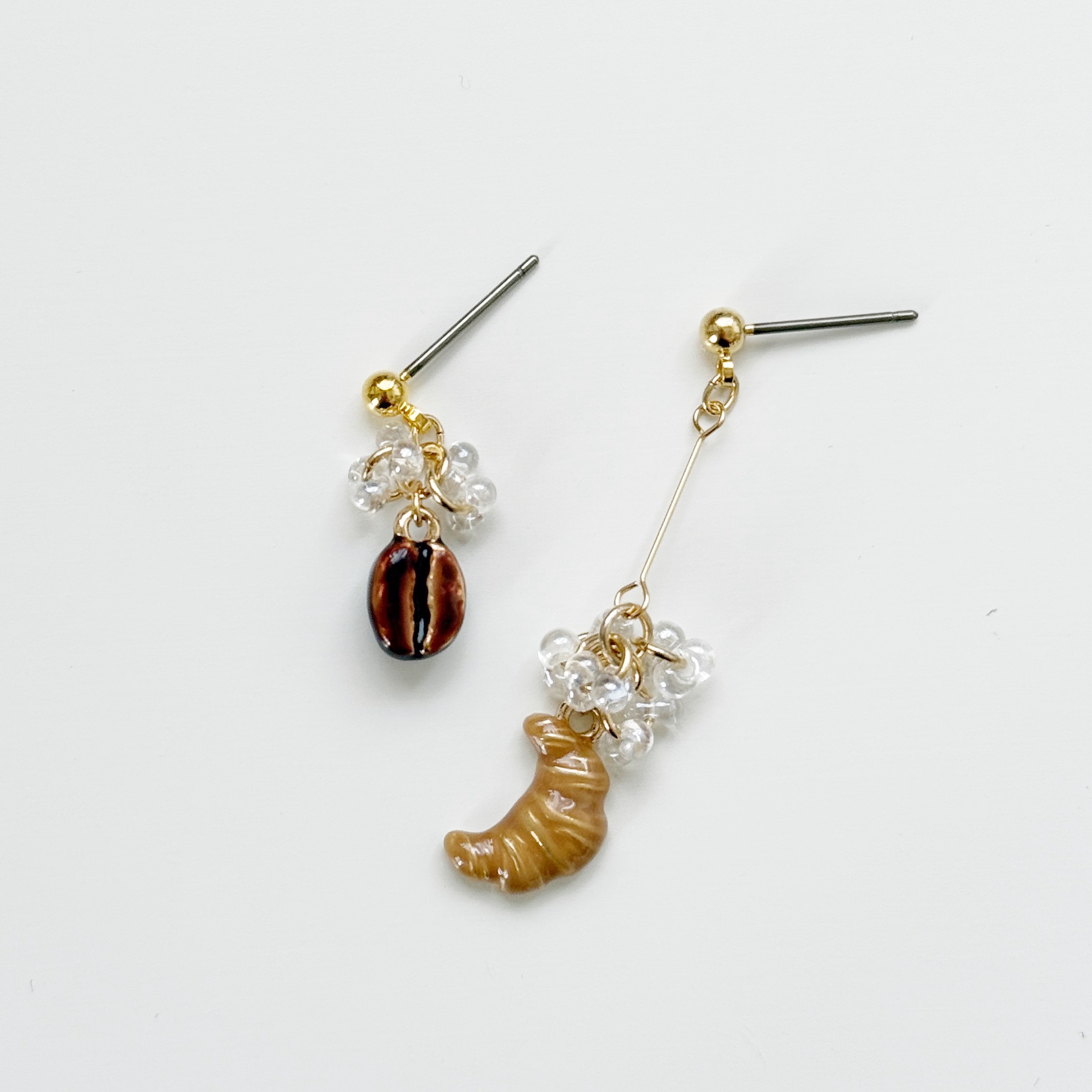 面白ピアスモチーフピアスカフェ巡りおうちカフェコーヒー豆マグカップパン屋さんクロワッサンおしゃれカフェ金属アレルギー対応揺れるピアス揺れるイヤリング