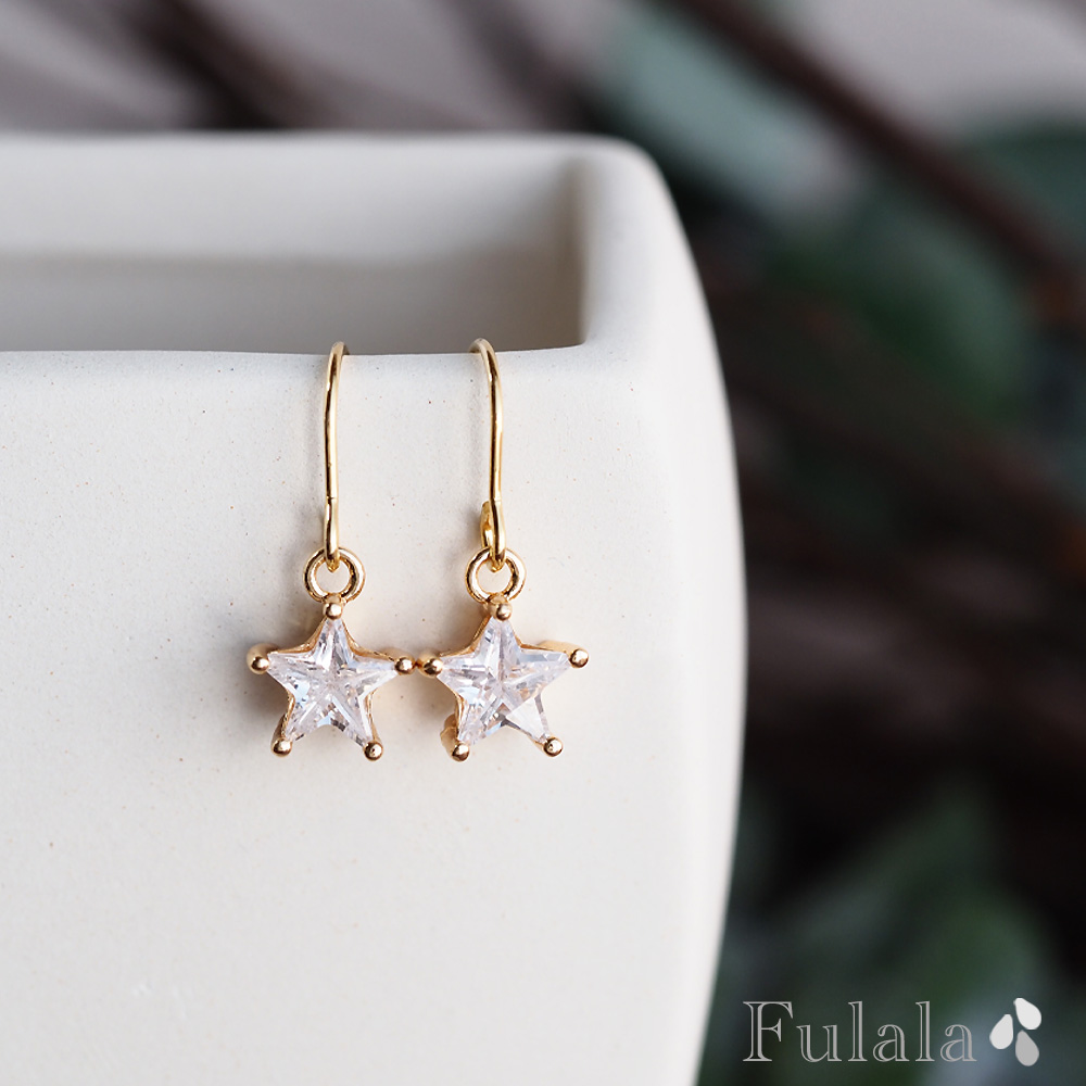 ピアス 金属アレルギー対応 キュービックジルコニアの一粒スターピアス イヤリング変更無料 ステンレス 316L 樹脂ピアス チタンピアス サージカルステンレスピアス 金アレ ゴールド星 スター 揺れる