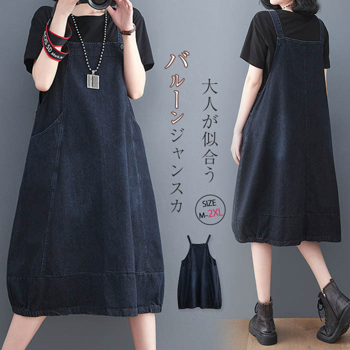 デニム ジャンパースカート 大人 膝丈 ミディアム 春 夏 サロペット スカート ジャンパー スカート サロペットワンピース レディース サロペットスカート