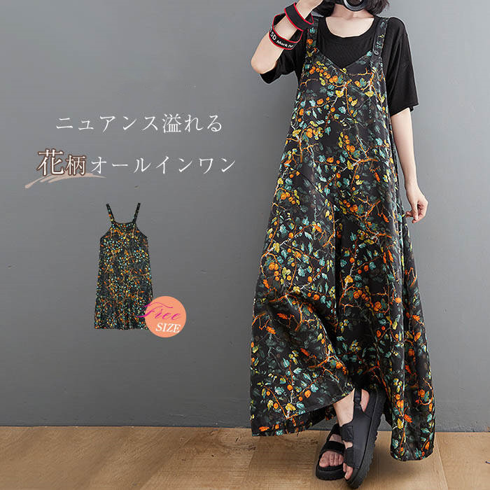 サロペット レディース サロペット パンツ レディース ワイドパンツ 大きいサイズ ワンピース サロペット 花柄 大人 オールインワン カジュアル フレア