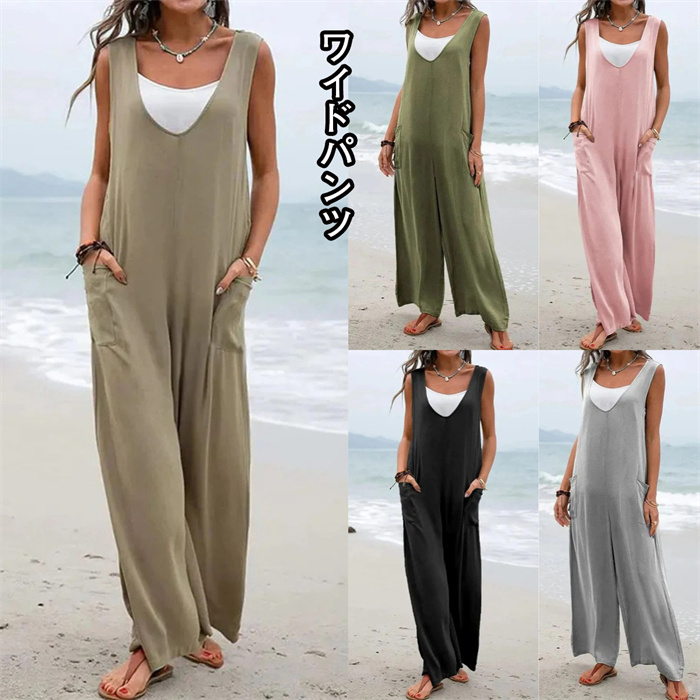 サロペット レディース ワイドパンツ 夏 オールインワン パンツレディースファッション ボトムス パンツ