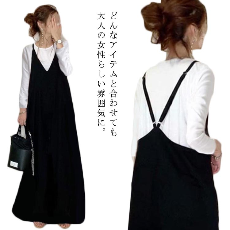 ロングワンピース キャミワンピ キャミソールワンピース レディース レディースワンピース ゆったりワンピース 夏 ゆったり 可愛い 無地 ロング Aライン 無地 サロペットスカート