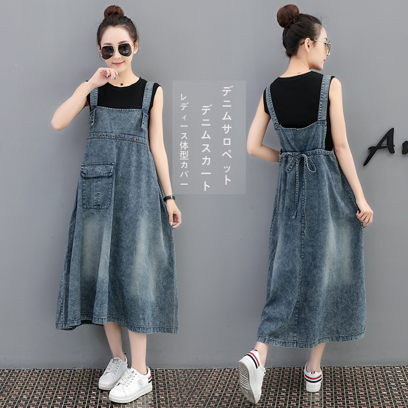 サロペット デニムスカート レディース体型カバースカート サロペット ミドル丈 デニムワンピース デニム オールインワン マキシ丈 デニムスカート デニムジャンパースカート