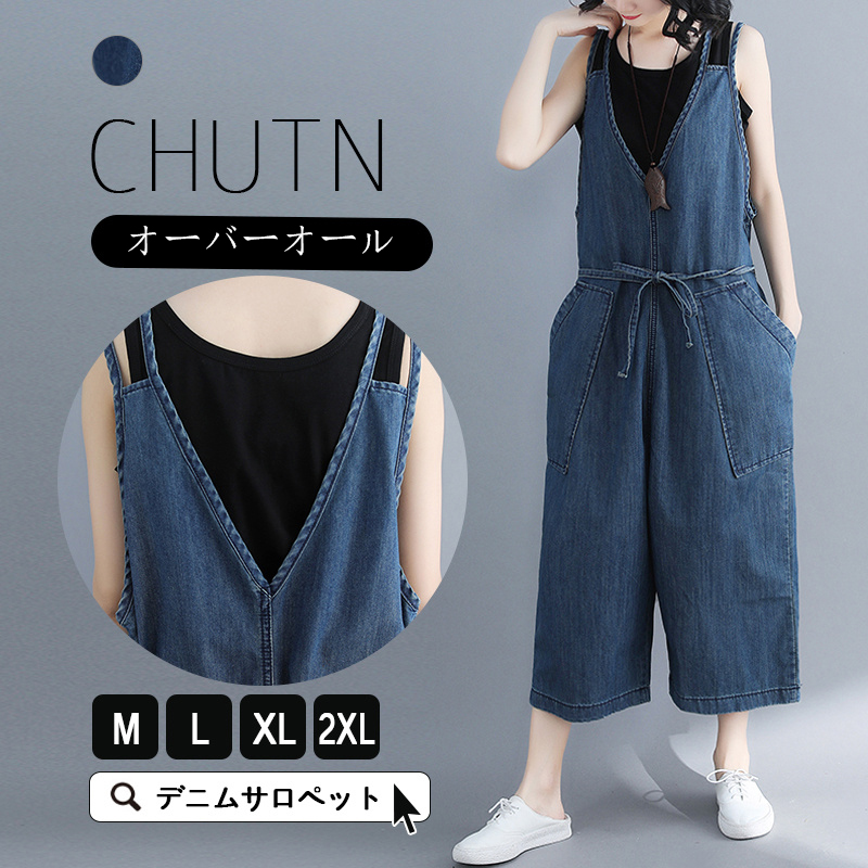 夏場で涼しく着こなせる 楽ゆる動きやすいサロペット 可愛い きれいめロング丈 お洒落 楽ちん 大きい ベルト付きオーバーオールパンツ デニムサロペット カジュアルサロペット