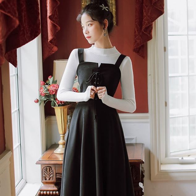 きれいめ レディース ファッション ジャンパースカート レディース ワンピース ミモレ丈 スクエアネック オフショルダー Aライン 無地 レトロ シンプル おしゃれ かわいい ジャンスカ