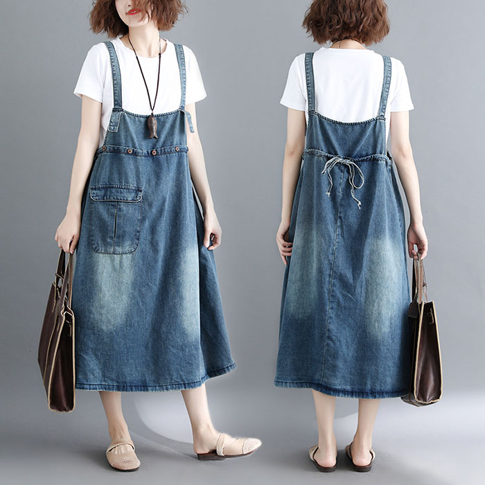 デニム サロペット ジャンパースカート オーバーオール オールインワン スカート ユーズド加工 ウォッシュ加工 ゆったり ロング丈 大人女子 カジュアル ゆるカジ オールシーズン