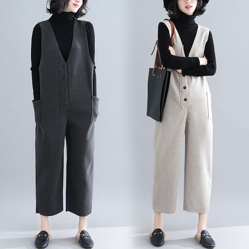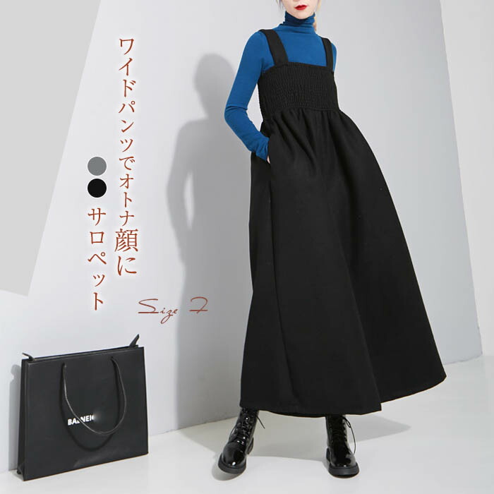 サロペット オーバーオール ワイドパンツ オールインワン レディース 厚手 ブラック グレー ジャンパースカート ロングパンツ ワイドパンツ サスペンダーパンツ