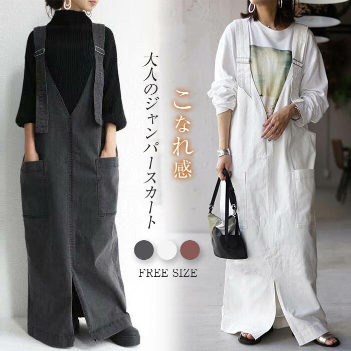 ジャンパースカート 春秋 無地 マキシ丈 ジャンスカ サロペットスカート ネック レディース 大人 ノースリーブ ワンピース 秋 春 レディースワンピース