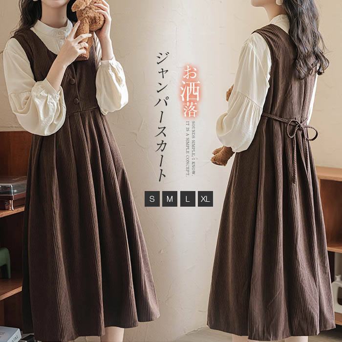 コーデュロイ ジャンパースカート 秋 冬 ワンピース 秋冬 きれいめ ノースリーブ レディース ミモレ丈 タック サロペットスカート 大人 大きいサイズ