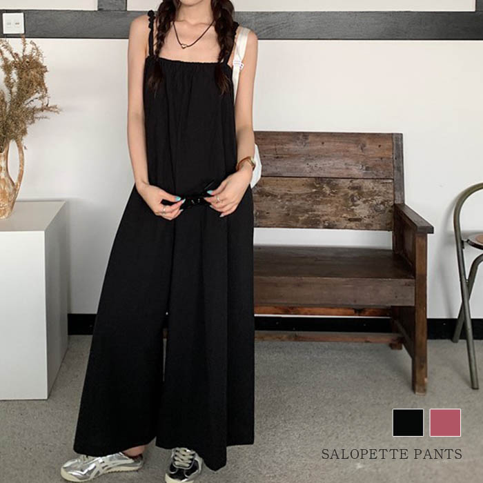 サロペット レディース サロペット パンツ レディース ロング 春夏秋 きれいめ オフィス 仕事 ゆったり キャミ ワイドパンツ オールインワン 黒 ブラック ピンク おしゃれ