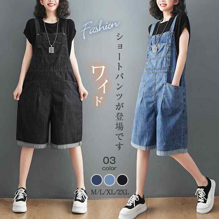 つなぎ パンツ レディース デニムパンツ デニム ノースリーブ オーバーオール ワイド ワイドパンツ カジュアル シンプル 定番 大人