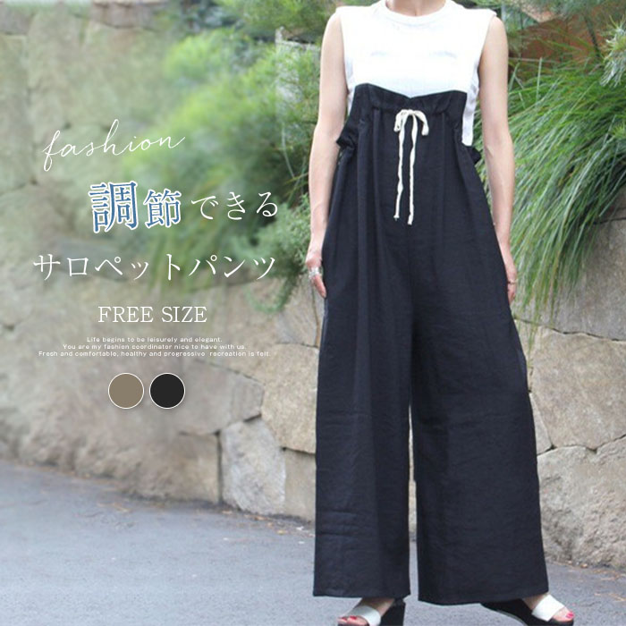 サロペット レディース サロペット パンツ ロング マキシ サロペットパンツ 春 夏 オフィス 仕事 オールインワン ゆったり キャミ ワイドパンツ カジュアル ナチュラル 調節
